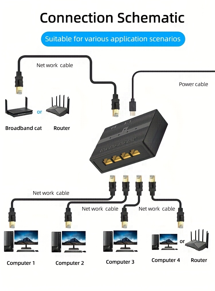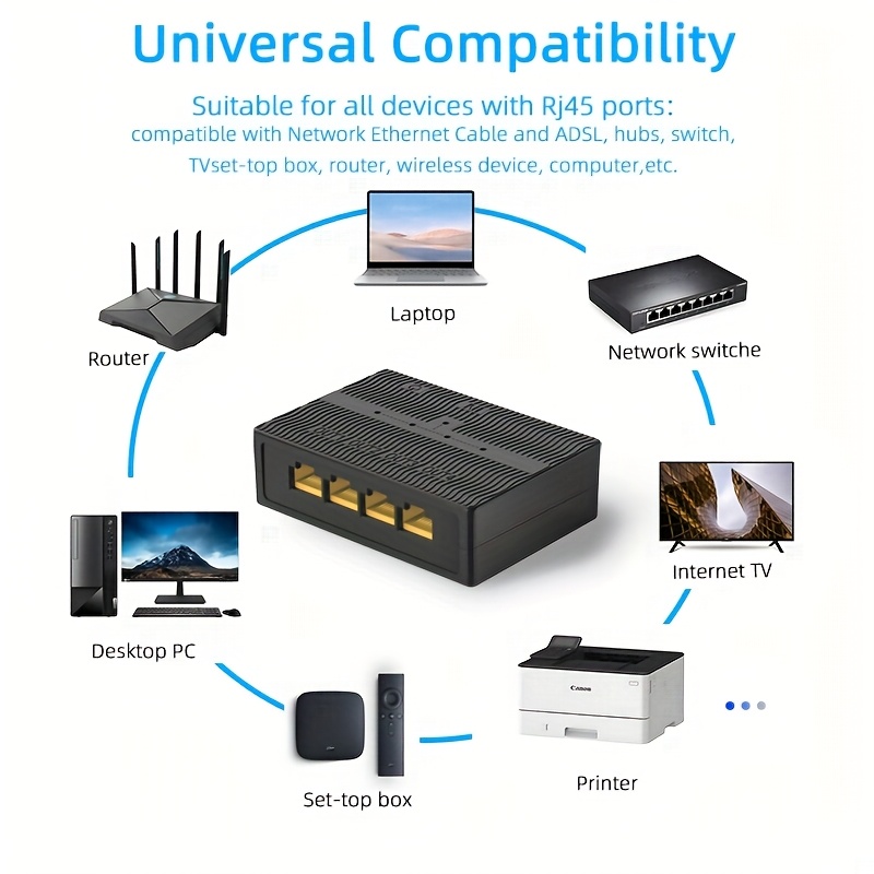 Compact and portable 5-Port Gigabit Switch for desktops, perfect for offices, homes, businesses, hotels, and more. Easy to set up, delivers fast, reliable wired connections, and expands your network effortlessly. Ideal for professional and personal networking needs.