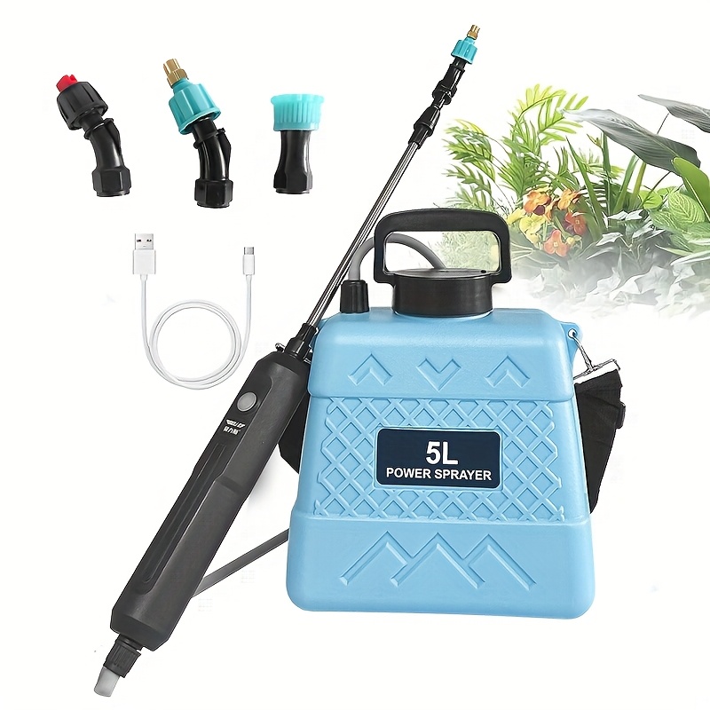 1.3 Gallon Battery-Powered Garden Sprayer with USB Rechargeable Handle, 4 Nozzle Spray