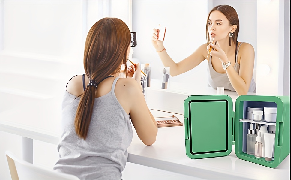 1.06gal Portable Mini Refrigerator with Mirror And Light for Both Heating And Cooling