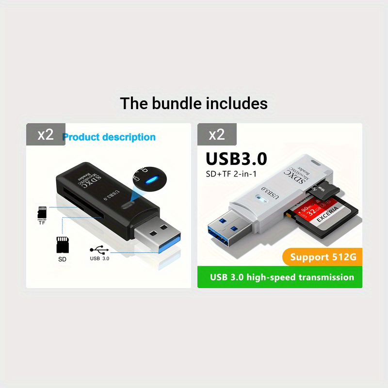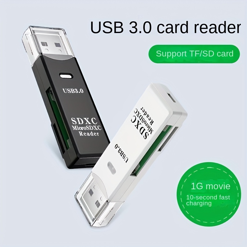 Upgrade your data transfer with this 2-in-1 Mini USB 3.0 Card Reader. Supports SD, Micro SD, and TF memory cards, making it perfect for PCs and laptops. Enjoy fast, reliable, plug-and-play performance with all flash drives. Compact, lightweight, and compatible with Windows and Mac, this card adapter ensures efficient file transfer anytime, anywhere.