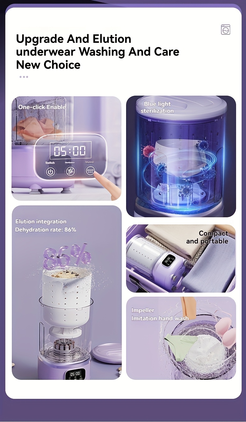 The SENBOWE Portable Washing Machine is a compact, three-mode rotary bucket washer and dryer perfect for small spaces, travel, and apartments. Efficiently cleans and dries clothes with minimal effort. Lightweight, portable, and easy to use, it’s ideal for quick laundry needs. Save time and energy with this versatile mini washing machine for home or travel.